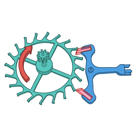 Üst kısmında bulunan düzenli dişli, kaçış çarkının dönmesini sağlar ve bu dönme hareketi saat mekanizmasına enerji sağlar.