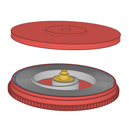 Çardağın sıkı tutulduğunu ve zemberek yayının tıpkı yukarıdaki gösteride olduğu gibi namluyu döndürdüğünü varsayacağız. Zemberek ve namlu konusunu bitirmeden önce bu mekanizmayı daha güvenilir kılan diğer iki detaydan bahsedelim. Rahatlamış baharı bir kez daha gündeme getireyim Zemberek yayına bağlanan metal şerit, dış kısmına ilave gerilim sağlar. Bu metal şerit gerçekten düz şekline geri dönmek istiyor, bu yüzden namlunun duvarına doğru itiyor ve zembereği yerinde tutan çok fazla sürtünme olur. Bu , çardak iç kısmı hareket ettirdiğinde zembereğin dış ucunu kilitler . Yayı maksimum kapasitesinin üzerinde sarmaya devam edersek , zemberek yayının içeri kaymasına neden olan sürtünmeyi aşmış oluruz; bu, parçaların kırılmasını önleyen bir güvenlik mekanizması görevi görür. Gördüğümüz gibi, rahat durumdayken zemberek, çeşitli eğriliklere sahip bir S şekli oluşturur. Bu, zembereğin namlu içindeyken farklı bölümlerindeki gerilimin dengelenmesine yardımcı olur . Sarılmış yayın iç kısımlarının dış kısımlara göre çok daha küçük bir yarıçapa sahip olduğuna dikkat edin. Gevşemiş yay sadece düz bir metal parçası olsaydı, sarma işleminden sonra iç kısımlar dış kısımlara göre çok daha fazla bükülürdü. S şeklindeki yay ile yayın dış kısımları da benzer bir gerilim altındadır çünkü ters yönde bükülmüş olan eğrisine geri dönmek isterler. Zembereği sabitlemek ve içeri toz girmesini önlemek için namluyu yerine oturan bir kapakla kapatılır bazı saat kapaklarına dikkat ederseniz kullanıcılar için gizli bir mesaj taşımaktadır.:)
